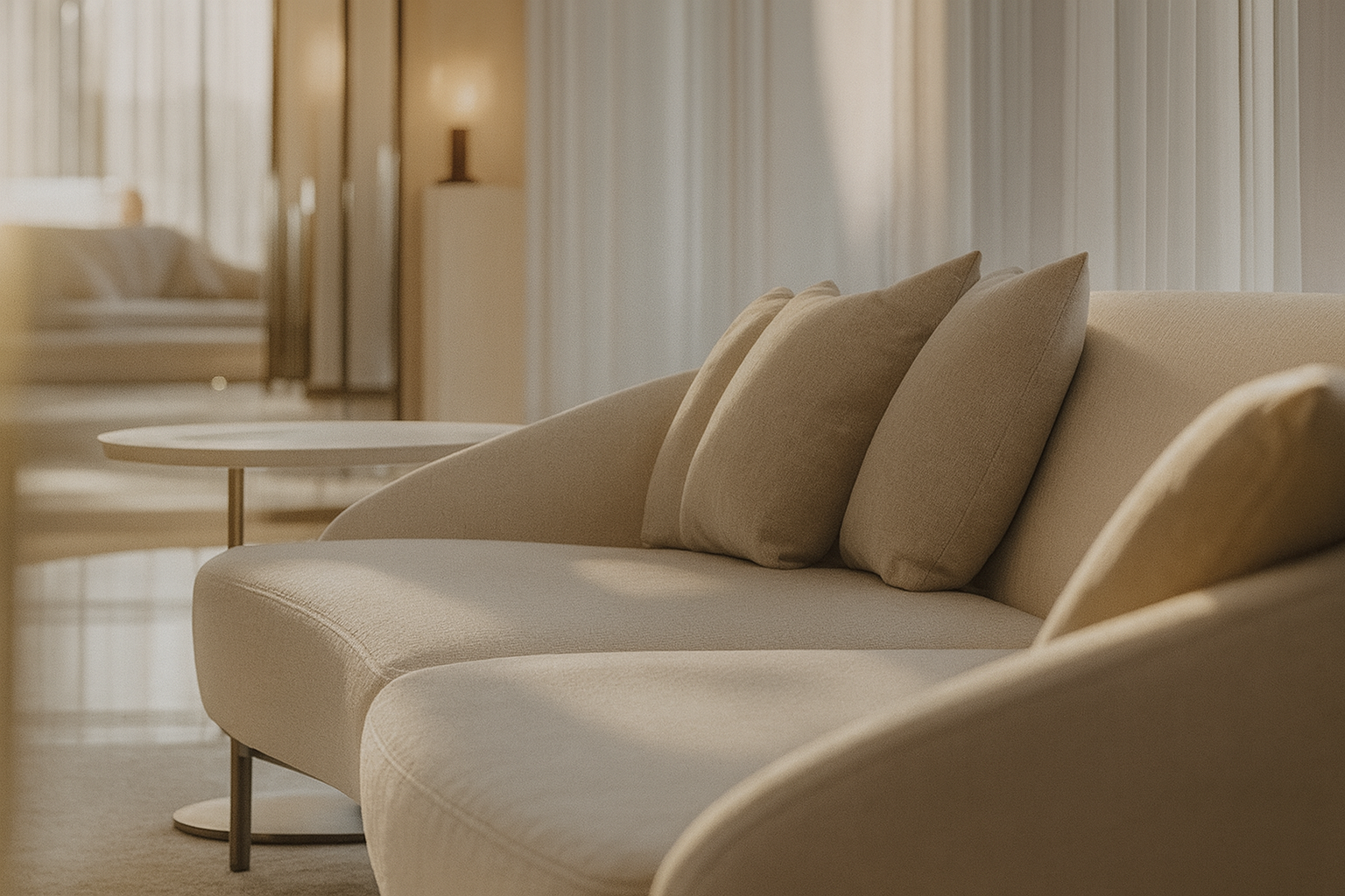 Puder og hynder er med til at understøtte hotellets stil og komfortniveau – både ude og inde. I loungeområder, receptioner og på værelser kan de skabe et imødekommende og eksklusivt udtryk, mens de på terrasser og altaner tilføjer funktion og hygge.