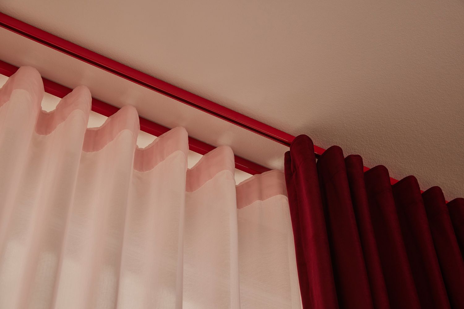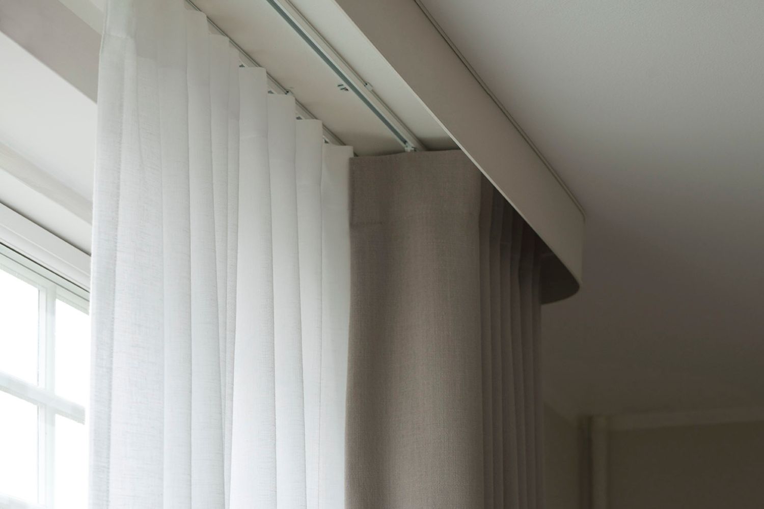Hos Pana anbefaler vi ofte en dobbeltskinne med både et mørklægningstekstil og et let, transparent undergardin. Det giver gæsten mulighed for at variere lysindfald og privatliv i løbet af dagen – og skaber et eksklusivt hotel-look.