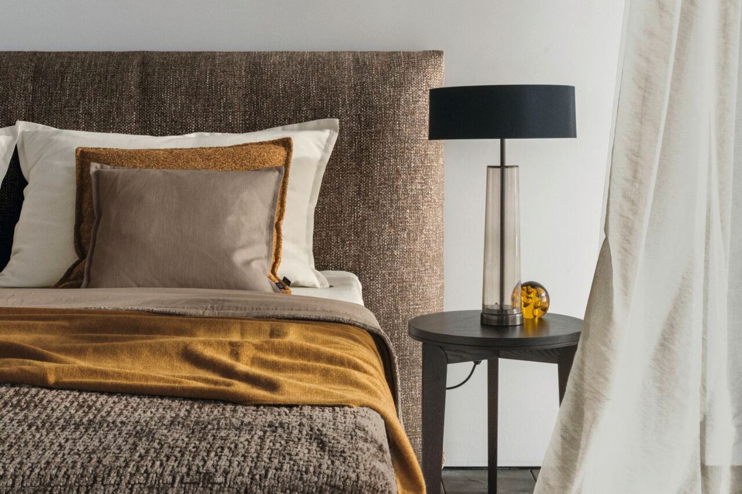 Store, bløde gardinløsninger i smukke tekstiler skaber et eksklusivt og imødekommende udtryk. De kan bruges som rumdelere, til afskærmning eller blot som et dekorativt lag, der gør rummet mere sanseligt og hjemligt.