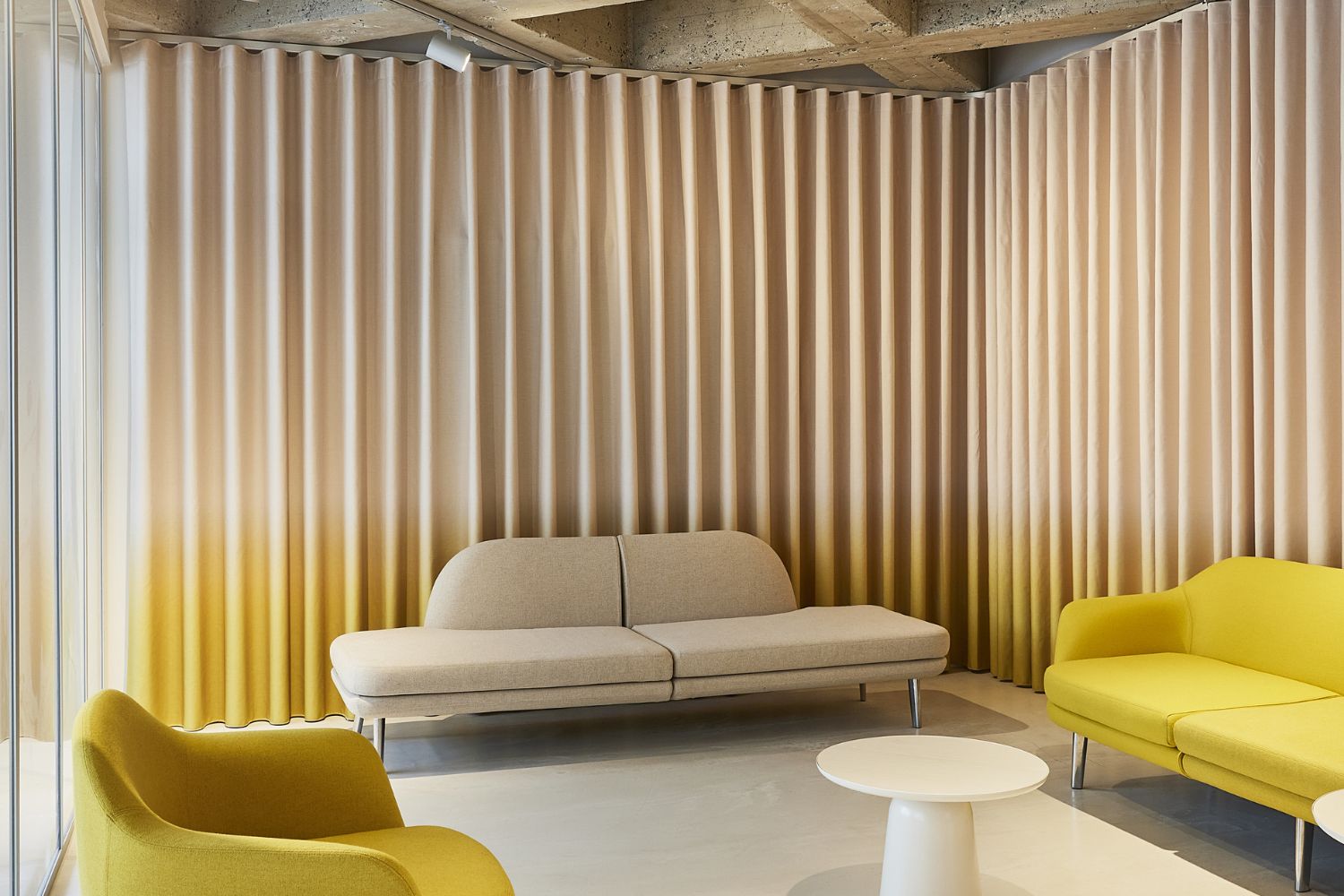 Vi tilbyder også gardiner med skjulte syninger og brandsikre løsninger, så du kan opfylde både akustiske og sikkerhedsmæssige krav – uden at gå på kompromis med æstetikken.