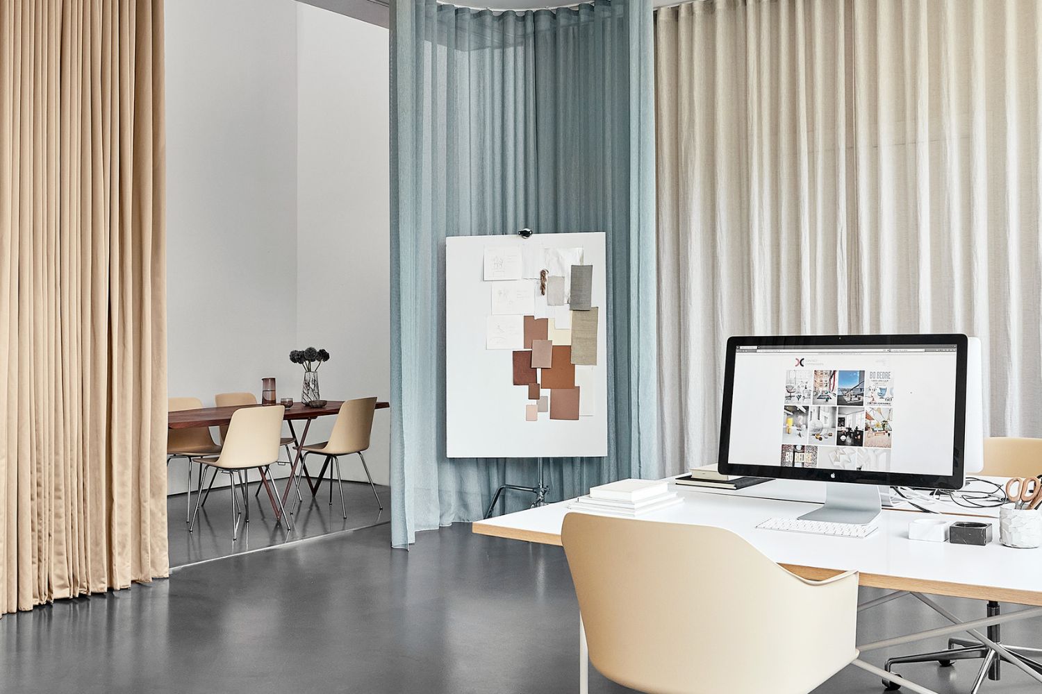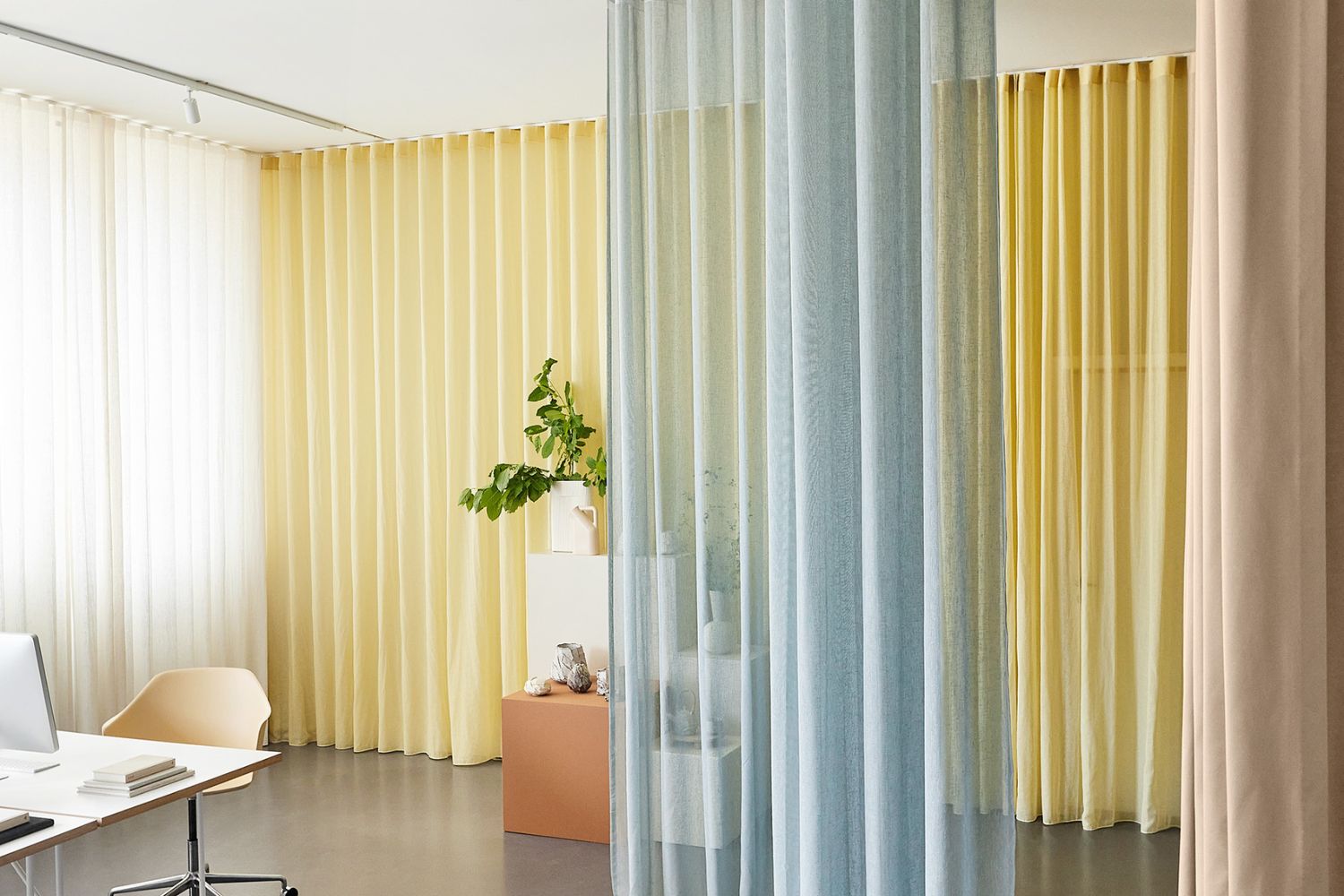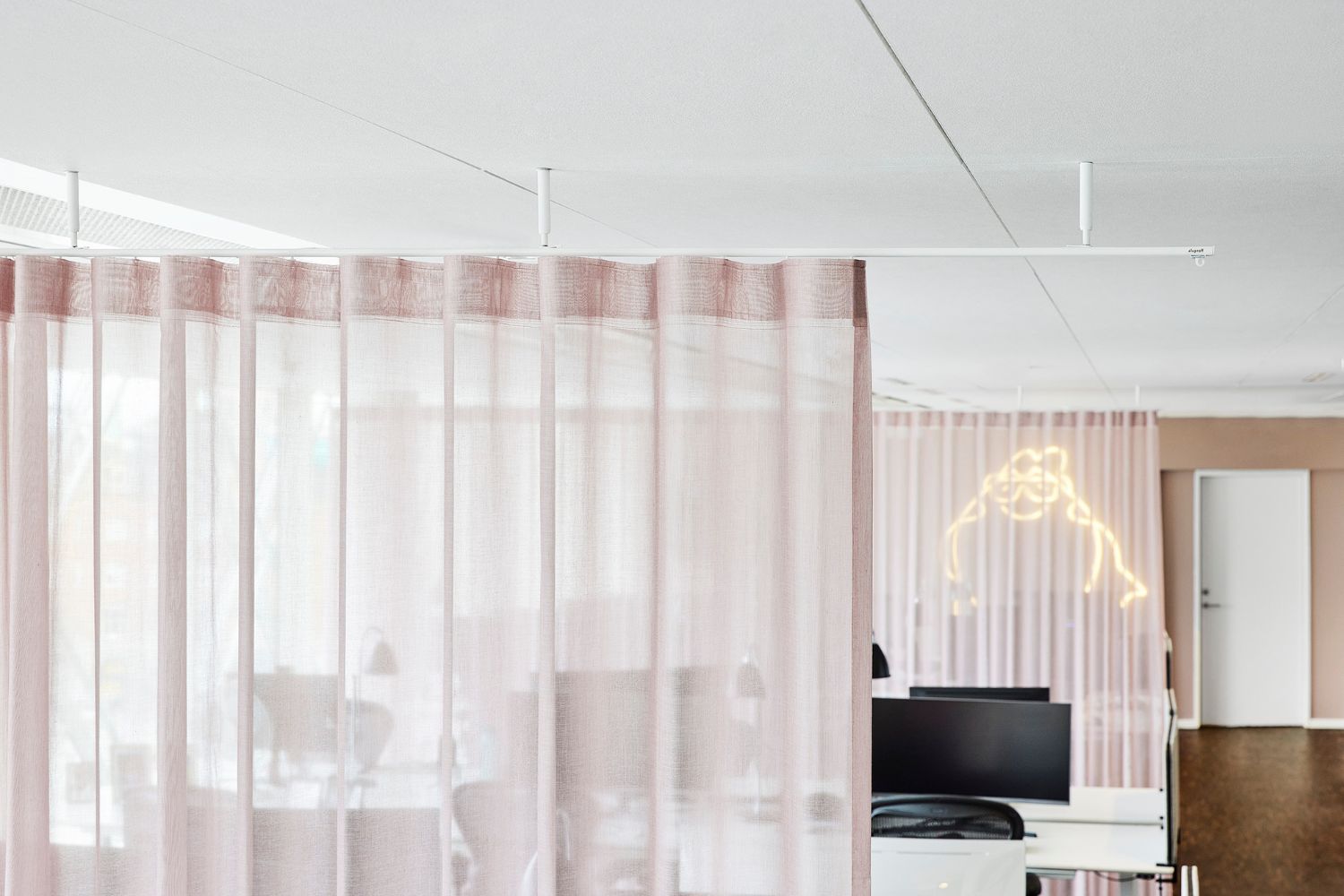 Stofgardiner er et effektivt redskab i moderne kontorindretning, hvor de både tilfører varme og ro til rummet og skaber en visuel sammenhæng. De kan bruges til at afskærme mødezoner, opdele åbne kontorlandskaber og danne en blødere overgang mellem forskellige funktioner. Samtidig bidrager tekstilerne til en forbedret akustik, hvilket har stor betydning for koncentration og trivsel i hverdagen.