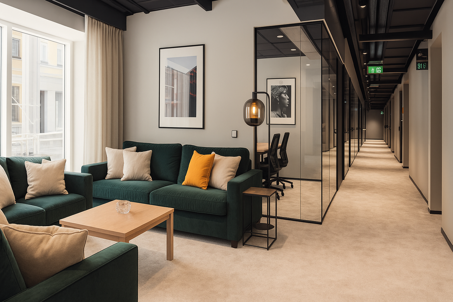 • Forbedre akustik ved at absorbere lyd og reducere rumklang – særligt vigtigt i åbne kontormiljøer og møderum